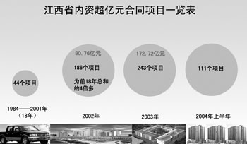 2003年,江西明確提出重點(diǎn)把汽車航空及精密制造業(yè)、特色冶金和金屬制造業(yè)、中藥和生物醫(yī)藥產(chǎn)業(yè)、電子信息和現(xiàn)代家電業(yè)、食品工業(yè)、精細(xì)化工及新型建材業(yè)六大產(chǎn)業(yè)培育發(fā)展成為江西經(jīng)濟(jì)發(fā)展的支柱產(chǎn)業(yè)。到2007年,力爭六大支柱產(chǎn)業(yè)規(guī)模以上企業(yè)的年銷售收入超過2300億元,年均增長26%,占全省規(guī)模以上工業(yè)銷售收入的75%左右;占全省生產(chǎn)總值由去年的8.8%提高到15%;形成年銷售收入超100億元的核心企業(yè)8家以上,其中超200億元3家;建設(shè)發(fā)展20個以上重大特色產(chǎn)業(yè)基地,其中10個超過100億元,著力建設(shè)江鈴、昌河、江銅、星火有機(jī)硅、贛南稀土、新鋼、萍鋼、萍礦等特色工業(yè)小區(qū)。