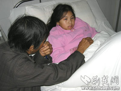 在縣人民醫(yī)院內(nèi)三科9病房里,潔白的病床上躺著一個(gè)面色蒼白、嘴唇發(fā)烏的小姑娘,她就是楊青。在楊青艱難地望過來的時(shí)候,記者的心不禁打了個(gè)顫:大眼睛沒有一絲神采!記者反復(fù)醞釀的問候語哽在喉中。楊青的父母、奶奶、姑媽,卻忍不住悲傷,淚如雨下!皸钋,你痛不痛?”“痛……”楊青張了張嘴,聲音弱得幾乎聽不見!澳睦锿矗嬖V阿姨好嗎?”“全身都痛!睏钋囝澏吨鲁鲞@4個(gè)字后,不再開口說話。