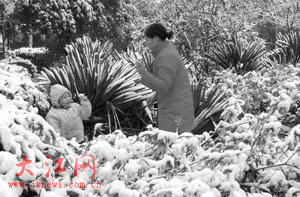 雪地里母子其樂融融