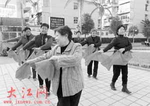 老有所樂的市民扭起了歡快的秧歌舞