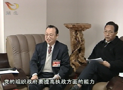 湖北省政協(xié)委員王敬璋 :" 黨的組織 政府 要提高執(zhí)政方面的能力 政協(xié)要提高參政議政能力 都要學習提高 是學習胡錦濤同志這一兩年來集中全黨智慧 提出的系列重大理論問題 比如說以人為本的問題 執(zhí)政為民的問題 科學發(fā)展的問題 以及和平崛起 和平發(fā)展問題 和建設(shè)和諧社會問題 "