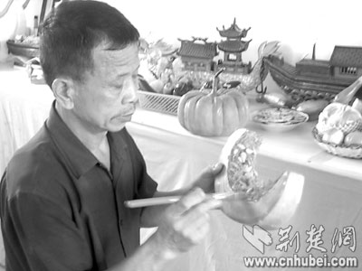 “老人家,這確實(shí)是用泡沫雕成的!比巳褐,走出一個(gè)人。他是這個(gè)“冒牌貨”的生產(chǎn)者,特意帶著自己的“作品”,來菜場一顯身手的。