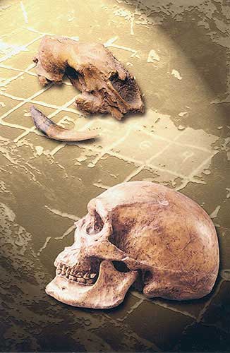 山頂洞人頭骨化石:(下,腦量1300毫升~1500毫升)