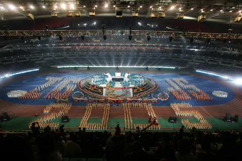 據(jù)新華社電 中華人民共和國第十屆運動會12日在江蘇南京隆重開幕。中共中央總書記、國家主席、中央軍委主席胡錦濤宣布:中華人民共和國第十屆運動會開幕!