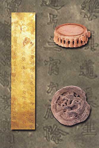 龍紋瓦當:建筑材料(右下,直徑17厘米)[相關鏈接]:20世紀中國百項考古大發(fā)現(1-20)20世紀中國百項考古大發(fā)現(21-40)20世紀中國百項考古大發(fā)現(41-60)20世紀中國百項考古大發(fā)現(61-70)20世紀中國百項考古大發(fā)現(71-80)81、云崗石窟(圖)82、龍門石窟(圖)83、敦煌莫高窟(圖)84、龍興寺佛教造像窖藏(圖)85、隋大興唐長安城遺址(圖)86、隋唐洛陽城遺址(圖)87、隋代虞弘墓(圖)88、唐代帝陵陪葬墓(圖)89、法門寺塔基與地宮(圖)90、阿斯塔那墓地(圖)91、渤海上京龍泉府遺址(圖) 92、南唐二陵(圖)93、白沙宋墓(圖)94、遼陳國公主墓(圖)95、龍泉青瓷窯址(圖)96、耀州窯遺址(圖) 97、西夏王陵(圖)98、古格故城遺址(圖)99、元大都遺址(圖)100、明定陵(圖)