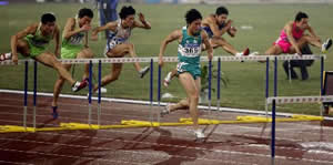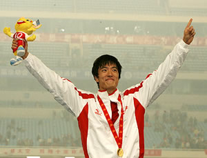 十運(yùn)會(huì)田徑比賽最精彩的大戲10月20日在奧體中心田徑場(chǎng)進(jìn)行,奧運(yùn)冠軍劉翔在萬(wàn)眾矚目之中,以13秒10的好成績(jī)毫無(wú)懸念地奪得冠軍,這是他在全運(yùn)會(huì)中的第二次奪冠,也是他今年在國(guó)內(nèi)比賽中的第二好成績(jī)。(圖片來(lái)自新浪體育)
