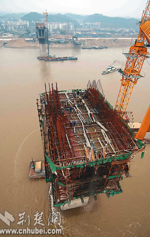 這是12號(hào)主塔墩正在進(jìn)行混凝土澆筑的情景。日前,宜昌長江大橋已完成3個(gè)主塔墩的混凝土澆筑,這標(biāo)志著大橋下部結(jié)構(gòu)工程已基本完成,轉(zhuǎn)入梁體施工階段。宜昌長江大橋是宜萬鐵路重點(diǎn)工程,該橋建設(shè)的順利進(jìn)行,為全路段按期建成通車打下堅(jiān)實(shí)基礎(chǔ)。