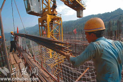 逢山開路,遇水架橋。在被稱為“工程禁區(qū)”的武陵山區(qū)修路,建設(shè)者們?cè)庥鲋H穗y以想象的困難?设F骨錚錚的男兒沒(méi)有訴苦,柔弱堅(jiān)強(qiáng)的女子沒(méi)有喊累,他們用山一樣的意志,面對(duì)著千難萬(wàn)險(xiǎn)。