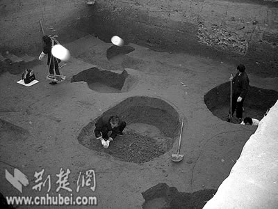 據(jù)了解,店子遺址是丹江口庫區(qū)首批由國家文物局批準(zhǔn)發(fā)掘的6個地下文物點之一。受省文物局委托,武漢大學(xué)考古系和武漢大學(xué)科技考古研究中心從去年3月開始對該遺址進行發(fā)掘。此處先后發(fā)現(xiàn)有多座商代早期的土坑墓、一段古城墻以及商周至唐宋時期的古窯址13座;出土有卜甲、鬲、鼎、灶、青銅兵器等一批珍貴文物,為揭開夏商史上重大的實物資料。專家說,這基本上可以稱得上是一個“人類文明通史”遺址。武漢大學(xué)科技考古研究中心副教授陳官濤說:“我們已經(jīng)初步了解到遼瓦店子遺址是一處新石器時代到漢代的重要遺址。目前勘察發(fā)現(xiàn),龍山文化、夏、商、西周、春秋戰(zhàn)國到西漢文化,在此形成了一個完整的文化延伸系列!