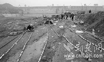 此次爆破的準(zhǔn)備工作從去年12月開始。承擔(dān)右岸下游圍堰拆除工程的葛洲壩集團(tuán)三峽指揮部,在短短的時間里完成了水上開挖110多萬立方米。2月23日,基坑開始進(jìn)水,并通過國務(wù)院驗(yàn)收組的驗(yàn)收,具備爆破條件。按原定計劃,準(zhǔn)時實(shí)施爆破。