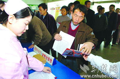 記者在醫(yī)院體檢登記冊上發(fā)現(xiàn),除湖北省各地區(qū)來漢的務工人員外,還有不少農民工來自四川、安徽、江西、河南等地。據(jù)院方介紹,除不屬于此次服務范圍的武漢市7個中心城區(qū)市民外,其他前來體檢的外來務工人員都享受了免費服務。