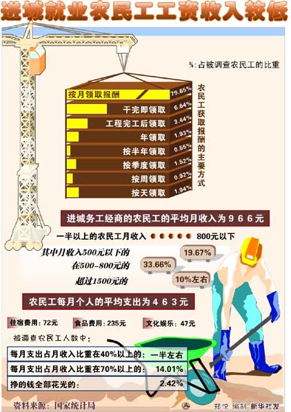 進(jìn)城就業(yè)農(nóng)民工工資收入較低(圖)