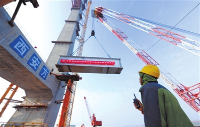 1月8日10時30分,由中鐵大橋局承建的赤壁長江公路大橋首片鋼梁成功架設(shè),標(biāo)志著大橋主橋鋼梁架設(shè)施工正式啟動,全面進(jìn)入上部結(jié)構(gòu)施工階段。