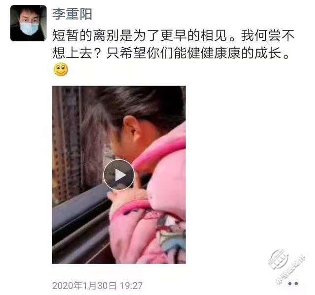 市疾控中心職工李重陽在外忙于消殺,已將近十天未能回家。途經(jīng)家門,他撥打電話,與咫尺之外的女兒通話,只為聽一聲“爸爸”。