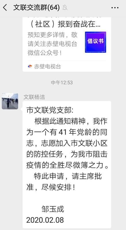 “我作為一個(gè)有41年黨齡的同志,志愿加入市文聯(lián)小區(qū)的防控任務(wù),為我市阻擊疫情的全勝盡微薄之力……”
