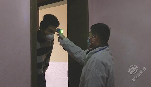 2月28日上午,記者在富源賓館臨時安置點看到,市救助站工作人員正在給浙江小伙鄭書選測量體溫。這位浙江小伙告訴記者,去年春節(jié)前,他開車將朋友送到赤壁市官塘驛鎮(zhèn)后,突發(fā)的疫情導致交通管制和酒店歇業(yè),他無法回家,也無處可去。在向赤壁公安民警求助后,他被送至赤壁市救助管理站?!霸谶@里吃住都還可以,像家里一樣,非常感謝救助站的工作人員。”