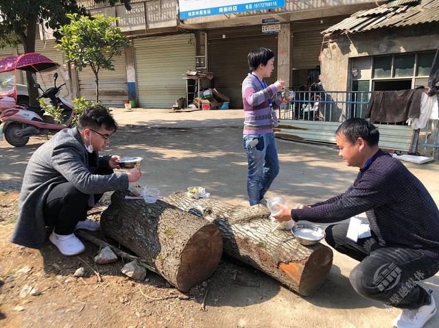 或站著或蹲著吃飯的戰(zhàn)“役”者隨處可見(jiàn)