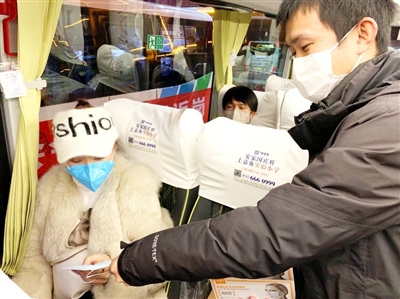 近日,嘉魚縣54名返崗人員被“點對點”送往上海、深圳。上車之后,工作人員逐一對返崗人員進行登記、核實身份、監(jiān)測體溫、填寫隨車個人健康檔案,并為務(wù)工人員依次送上口罩。通過“點對點”包車,從家鄉(xiāng)到就業(yè)地區(qū)“一站式”服務(wù),使得全縣返崗復(fù)工人員省心、安心、溫馨。 通訊員 皮道琦 攝