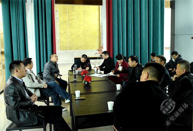 在羊樓洞新街,萬(wàn)里茶道文化博覽中心旁廳里,一場(chǎng)推進(jìn)萬(wàn)國(guó)茶市“百家茶企入茶市”裝修工程的專題會(huì)議正在召開。