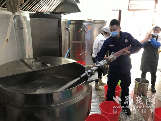 而在老虎頭小學(xué),消防員熟練地接好水帶、水槍,將清水注入學(xué)校儲水池內(nèi)。“有了消防員送來的水,孩子們中午可以放心吃飯了?!币幻趯W(xué)校廚房準(zhǔn)備做飯的廚師說。