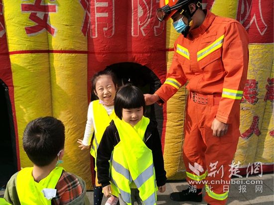 觀摩人員體驗(yàn)消防逃生帳篷。(通訊員供圖)