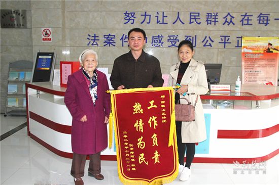 老人給西塞山區(qū)人民法院送錦旗。通訊員供圖
