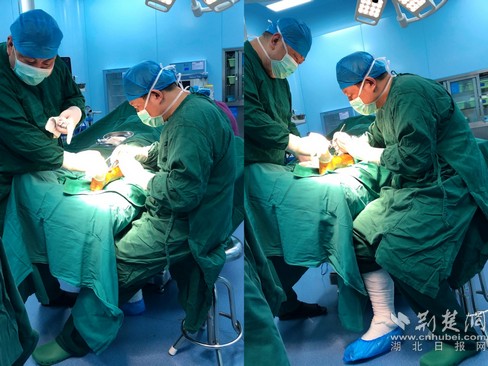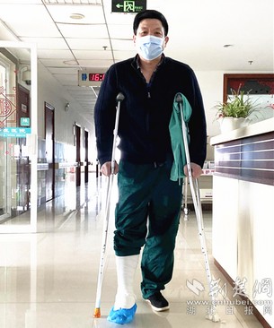 荊楚網(wǎng)客戶端—荊楚網(wǎng)消息(通訊員 廖亞芳)11月5日16:09,鄂州市中醫(yī)醫(yī)院骨傷科主任黃朝靖拖著疲憊的身軀,并不太熟練地拄著雙拐,從手術(shù)室回到科室。