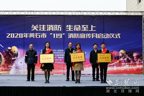 黃石開發(fā)區(qū)·鐵山區(qū)宣傳部、黃石港區(qū)勝陽港街道辦事處、大冶市東風(fēng)路街道辦事處下黃社區(qū)居民委員會榮獲“2020年消防公益宣傳先進(jìn)集體”。通訊員供圖