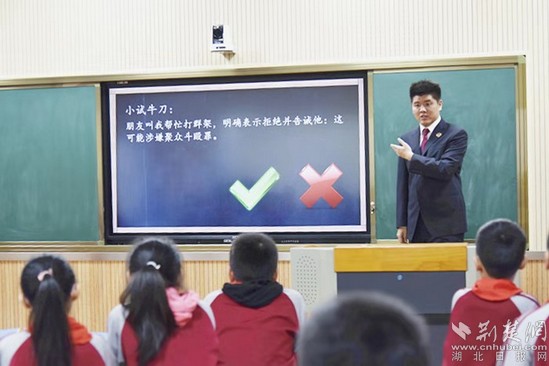 荊楚網(wǎng)客戶端—荊楚網(wǎng)消息(通訊員 李抒陽(yáng))11月10日上午,黃石市下陸區(qū)人民檢察院聯(lián)合團(tuán)市委、市檢察院前往張家湖小學(xué),為該校四年級(jí)學(xué)生講了一堂頗有趣味的法治教育課。下陸區(qū)檢察院干警張文豪擔(dān)任主講人。