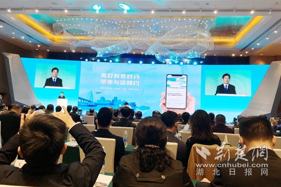 黃石港區(qū)委副書記、代區(qū)長嚴(yán)榮勇作臨空商務(wù)產(chǎn)業(yè)投資推介。(記者 呂鑒蕾 攝)