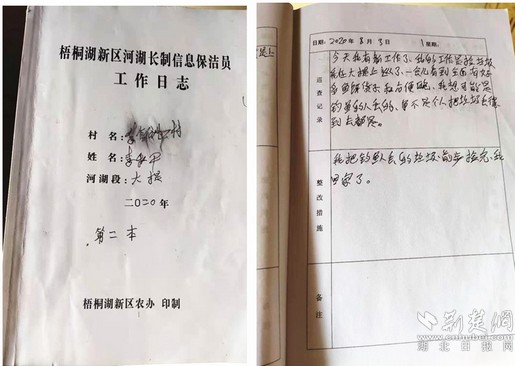 李和平成為河湖長制保潔員后每天寫的日志。熊子璇攝