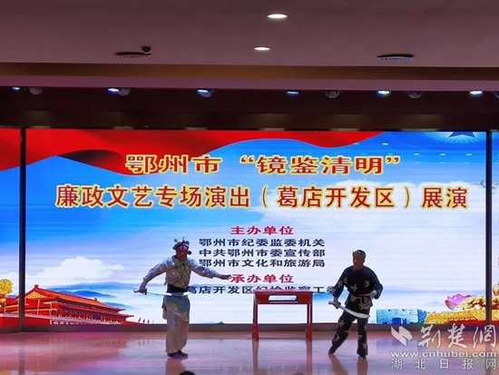 11月11日,鄂州市“鏡鑒清明”廉政文藝節(jié)目巡演走進(jìn)葛店開發(fā)區(qū)。(通訊員供圖)