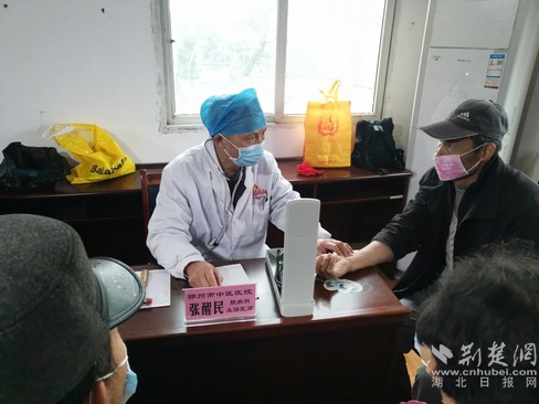 腦病科專家張醒民為村民號脈。通訊員供圖