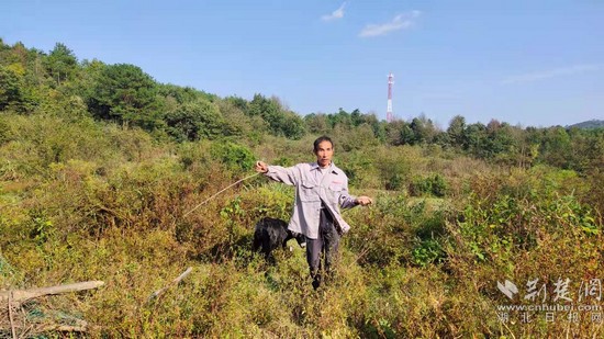 陳義本從叢林中找回放養(yǎng)的羊。記者 熊子璇 攝