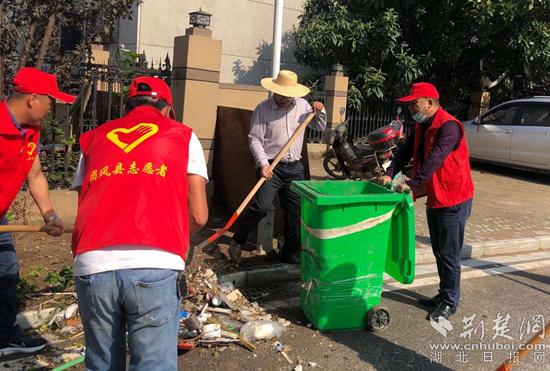團(tuán)風(fēng)縣委宣傳部在“雙聯(lián)雙進(jìn)”活動中到社區(qū)進(jìn)行衛(wèi)生大掃除志愿服務(wù)。通訊員供圖