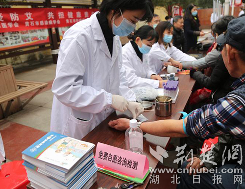 醫(yī)務(wù)人員為八泉社區(qū)的居民免費(fèi)做艾滋病檢測(cè)。通訊員 供圖