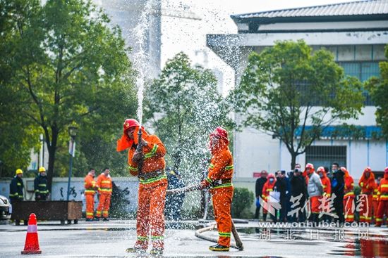 室內(nèi)消火栓出水操。(通訊員供圖)