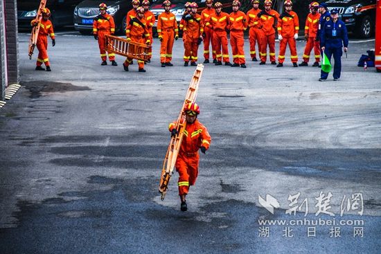 競賽內(nèi)容包括指揮能力競賽、400米疏散物資救人、樓層火災(zāi)內(nèi)攻操、手抬機動泵吸水出水操、手提式干粉滅火器滅火操、直調(diào)直報機制拉動、模擬接近調(diào)度等20個科目。