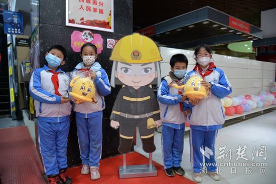 孩子們與卡通消防員人型玩偶合影。(通訊員供圖)