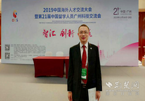 2019年12月18日,熊輝博士獲中國留學(xué)人員創(chuàng)新創(chuàng)業(yè)大賽優(yōu)勝獎。(湖北理工學(xué)院供圖)