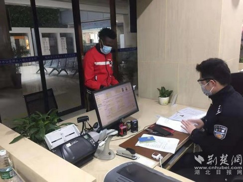 出入境管理支隊民警服務外籍友人。通訊員供圖
