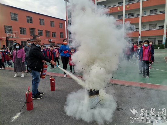 圖為:現(xiàn)場(chǎng)教學(xué)該如何正確使用滅火器。通訊員 供圖