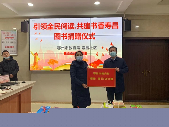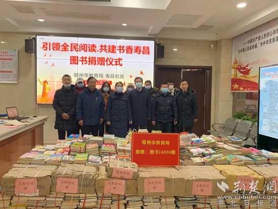 鄂州市教育局將募集的1.6萬冊(cè)圖書,捐贈(zèng)給壽昌社區(qū)。(通訊員供圖)