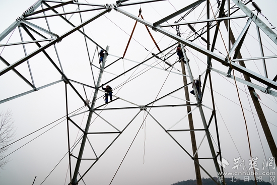 楚網(wǎng)客戶端—荊楚網(wǎng)消息(通訊員王軍、龍菲)1月6日,國網(wǎng)湖北黃石供電公司37名施工人員在陽新縣龍港鎮(zhèn)110千伏龍港變電站院墻外,組立鐵塔和吊裝110千伏電纜,全力沖刺龍港變電站增容改造工程。