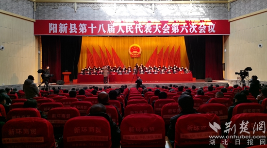 陽(yáng)新縣第十八屆人民代表大會(huì)第六次會(huì)議閉幕。(記者 阮瓊 制作)