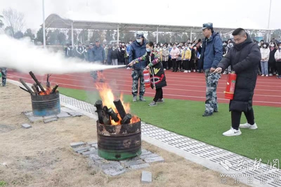 同學們在教官指導下認真開展消防演練。(通訊員供圖)