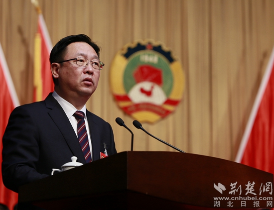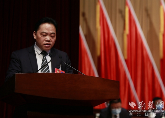 劉安定作《政協(xié)黃石市第十三屆委員會常務(wù)委員會關(guān)于十三屆四次會議以來提案工作情況的報告》。金康 攝