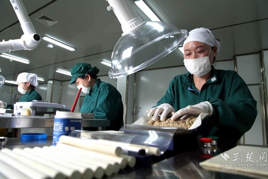 蘄春縣脫貧群眾在艾企從事手工卷艾條工序。通訊員供圖