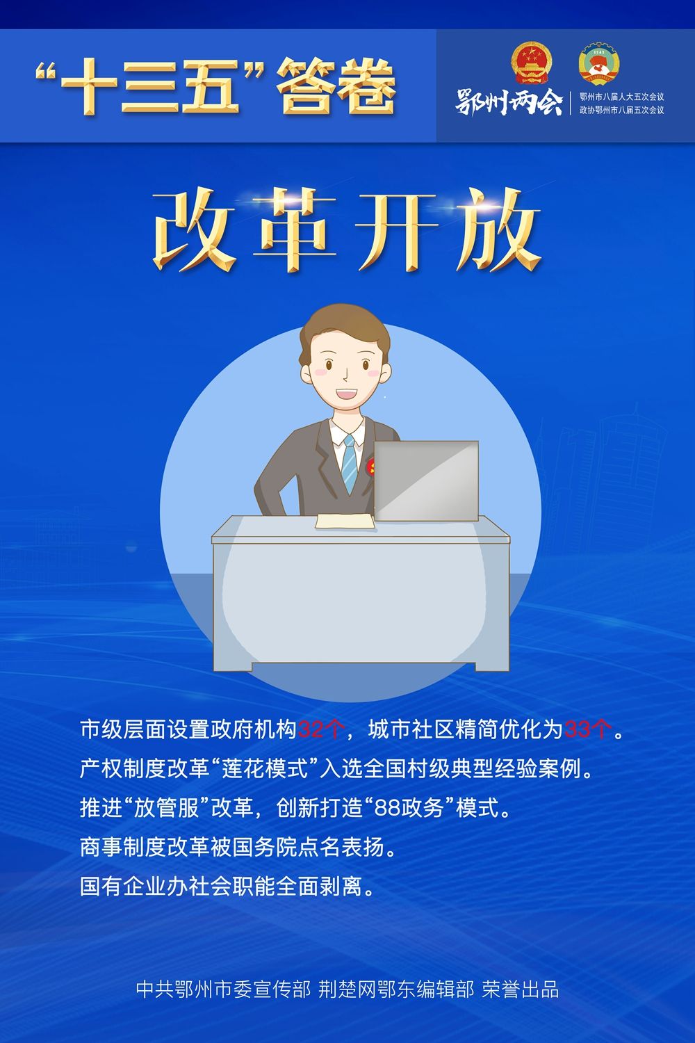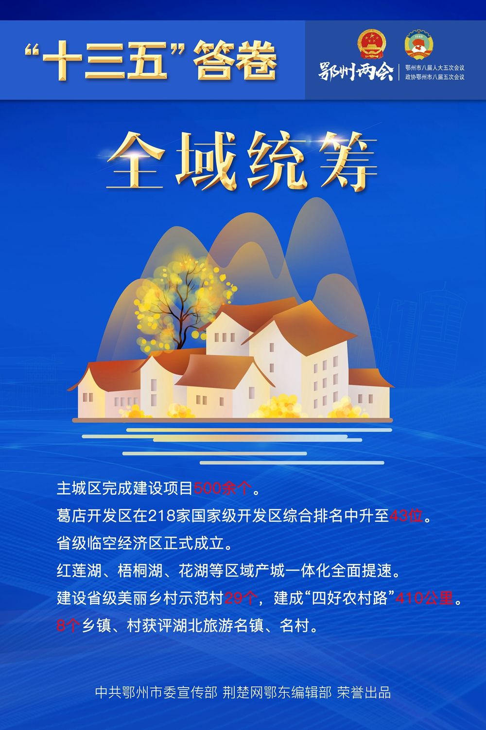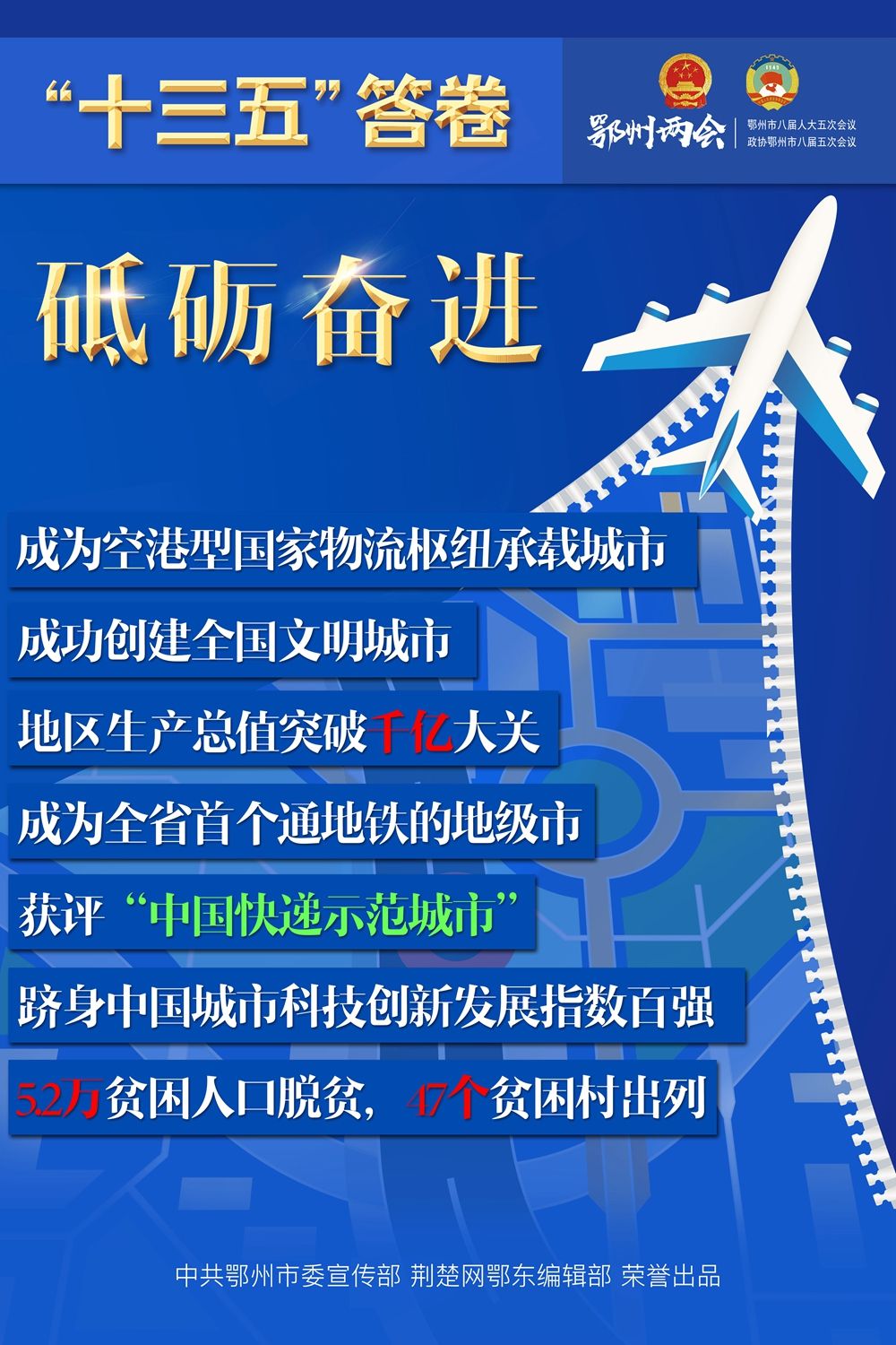 荊楚網(wǎng)客戶端—荊楚網(wǎng)消息(記者王焱堯、呂鑒蕾、劉璐 通訊員曾輝)1月15日,鄂州市第八屆人民代表大會第五次會議閉幕,為期4天的鄂州兩會落下帷幕?;赝捅P點,“十三五”表現(xiàn)如何?展望和啟程,“十四五”怎樣謀劃?14張海報,帶您速覽鄂州奮進“十年 ”。