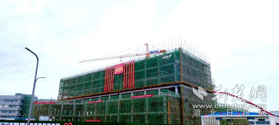 湖北省鄂東(黃岡)重大疫情救治基地一期項目主體結(jié)構(gòu)封頂。(通訊員供圖)